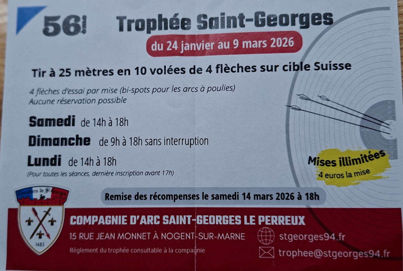 24 janvier au et 9 mars 2026 | Cie d'arc de St Georges du Perreux | Trophée Saint Georges | Mandat |