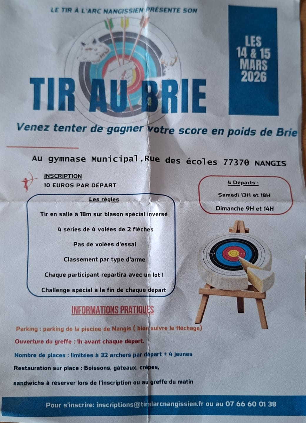 14 et 15 mars 2026 | Tir à l'Arc Nangissien | TIR AU BRIE | Mandat |